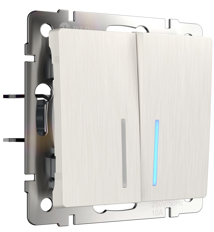 Выключатель с подсветкой без рамки Werkel 2-кл. перламутр рифленый