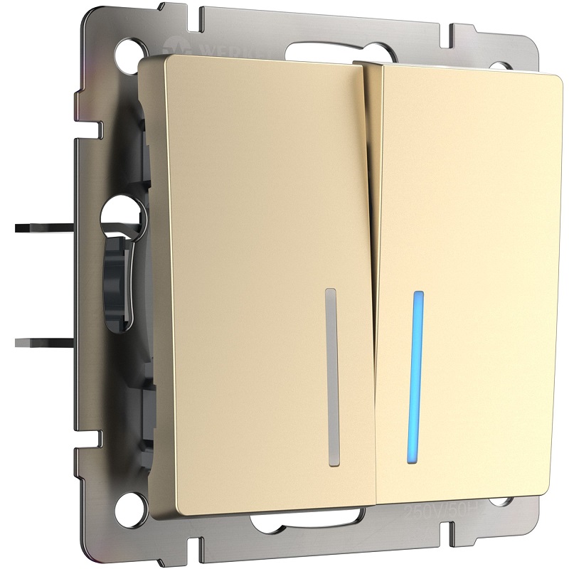Выключатель с подсветкой без рамки Werkel 2-кл. шампань металик