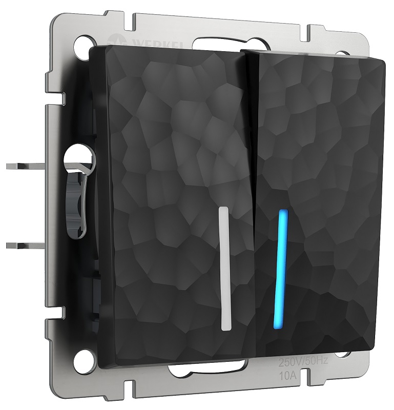 Выключатель с подсветкой без рамки Werkel Hammer 2-кл. черный