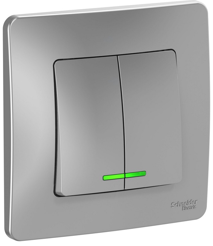 Выключатель с подсветкой с рамкой Systeme Electric Blanca 2-кл. алюминий