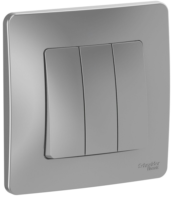 Выключатель с рамкой Systeme Electric Blanca 3-кл. алюминий картинка