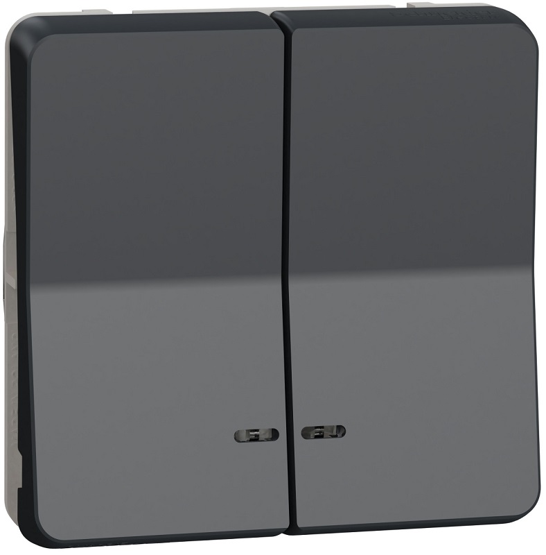 Выключатель самовозвратный с подсветкой без рамки Schneider Electric Mureva Styl 2-кл. IP55 антрацит картинка