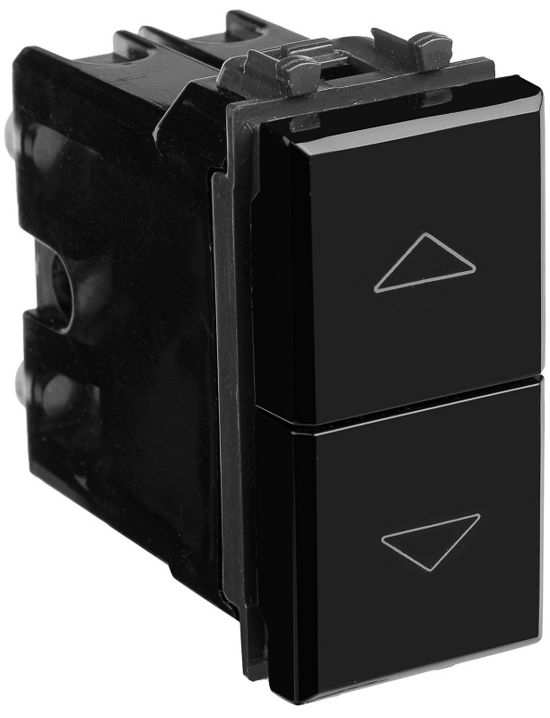 Выключатель жалюзи без фиксации модульный DKC Avanti 2-кл. 1 мод. черный квадрат
