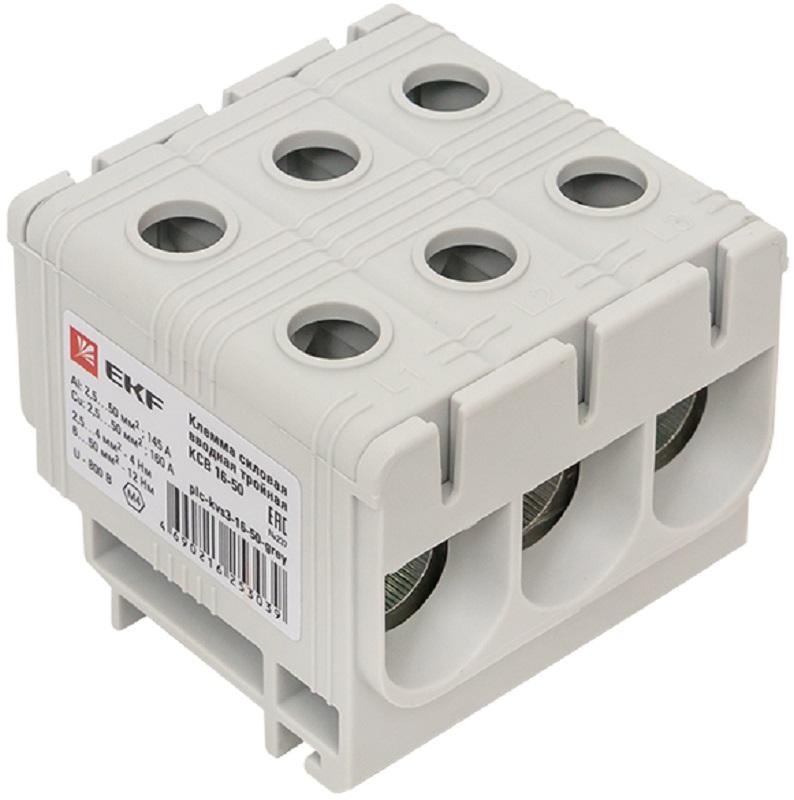 Клемма вводная силовая EKF PROxima КВС-16/50 3х-рядная 16-50мм2 серый картинка