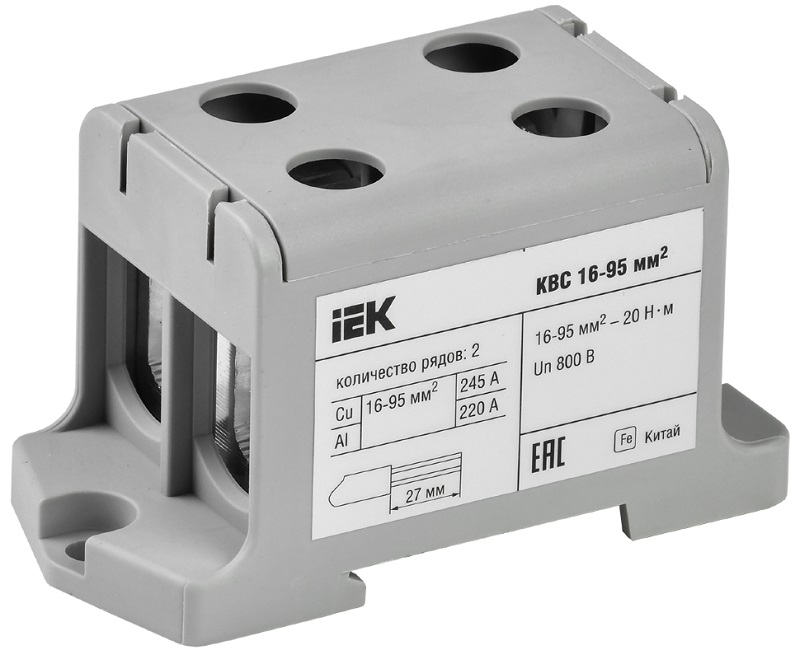 Клемма вводная силовая IEK КВС-16/95 L "фаза" 2х-рядная 16-95мм2 серый картинка