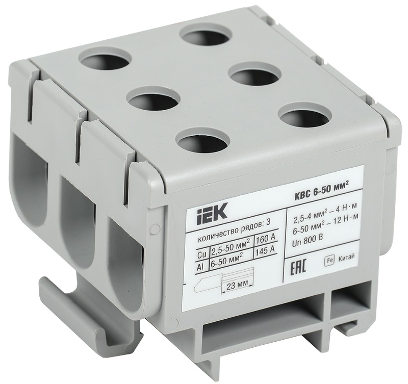 Клемма вводная силовая IEK КВС-6/50 L "фаза" 3х-рядная 6-50мм2 серый
