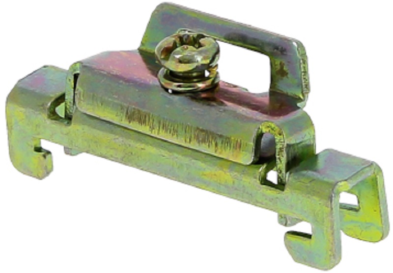 Зажимы применяются для фиксирования модульной аппаратуры и клеммных зажимов на DIN-рейке. Кронштейны для установки DIN-рейки позволяют установить рейку с отступом от монтажной платы, что дает возможность провести провода за DIN-рейкой. Кронштейн для установки DIN-рейки под углом позволяет установить клеммные зажимы под углом, что облегчает подведение к ним проводников. Изготовлены из оцинкованной стали.