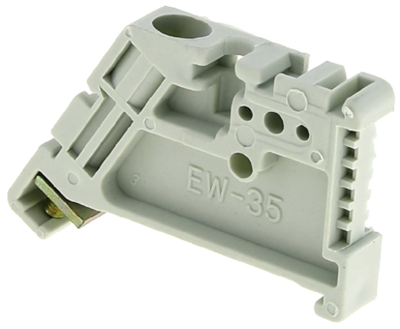Зажимы применяются для фиксирования модульной аппаратуры и клеммных зажимов на DIN-рейке. Кронштейны для установки DIN-рейки позволяют установить рейку с отступом от монтажной платы, что дает возможность провести провода за DIN-рейкой. Кронштейн для установки DIN-рейки под углом позволяет установить клеммные зажимы под углом, что облегчает подведение к ним проводников. Изготовлены из оцинкованной стали.
