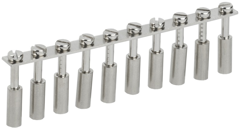 Перемычки (гребенки) используются для электрического соединения рядов клеммных сборок винтового типа (клеммы КВИ) в системах распределения.