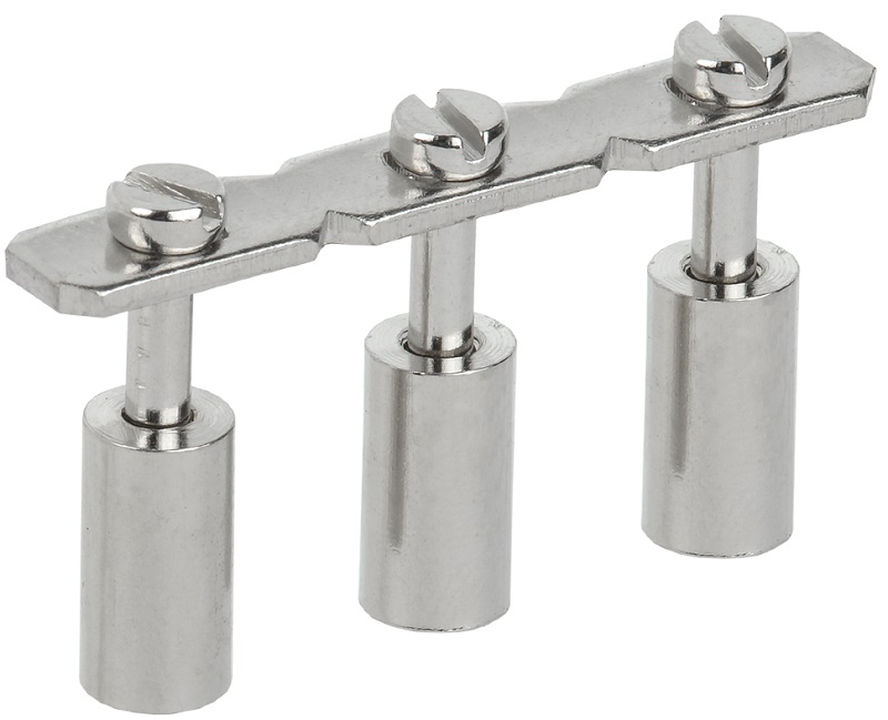 Устанавливаются в центре клеммы в соответствующие пазы токоведущих пластин путем ввинчивания соединительного винта в шину.