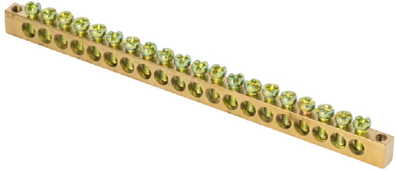 Шины предназначены для присоединения нулевых проводников (шина N) и заземления (шина PE). Шины выполнены из латуни и никелированной латуни. Нулевая шина устанавливается на изоляторе.