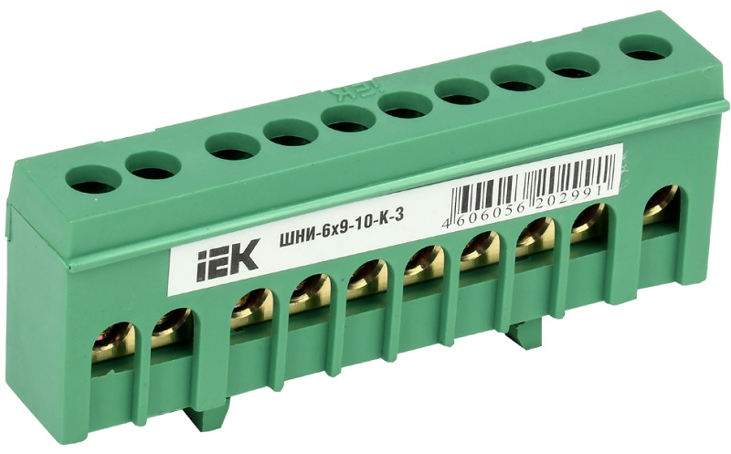 Шина изолированная IEK PE "земля" ШНИ-6х9-10-К-З 10 групп зеленый картинка