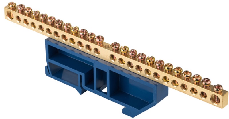 Шины предназначены для присоединения нулевых проводников (шина N) и заземления (шина PE). Шины выполнены из латуни и никелированной латуни. Нулевая шина устанавливается на изоляторе.