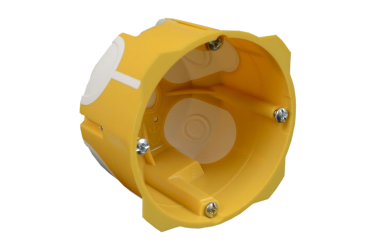 Повышенная прочность упрощает установку приборов. Входные отверстия изготовлены из эластичного материала. Обеспечивает герметичность ввода кабеля или трубы. Предотвращает прохождению воздуха через проводку. Рекомендуется для энергосберегающих или пассивных домов. Шипы для пометки центра сверления отверстий в гипсокартоне. Коробка снабжена пластмассовыми крепежными лапками. Монтажные и приборные винты имеют трехшаговую резьбу для быстрой установки. Ввод кабеля осуществляется путем прорыва мембраны острым предметом (например, отверткой); при необходимости мембранный вход можно удалить. Степень защиты IP30 достигается установкой крышки или устройства с равной или более высокой степенью защиты IP30. Защищено европейским промышленным патентом. При монтаже нет необходимости углублять край гипсокартона.
