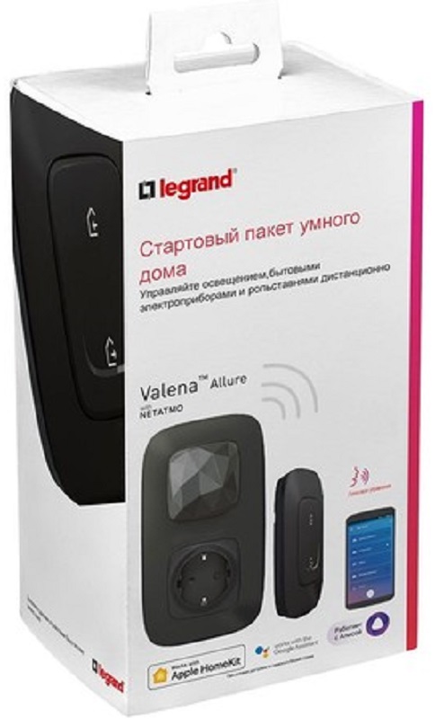 Коллекция умных устройств Valena Allure with Netatmo Стартовый пакет. Шлюз WiFi + умная розетка 2К+З 16А 230В + главный беспроводной выключатель "Я дома/Я вне дома".