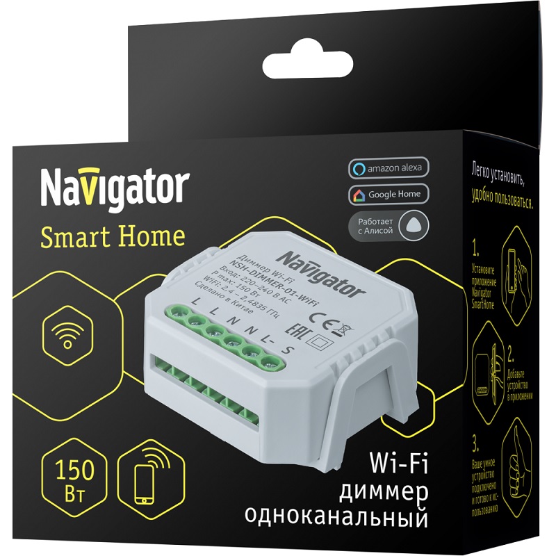 Умный диммер одноканальный Navigator SmartHome NSH-DIMMER-01-WiFi белый