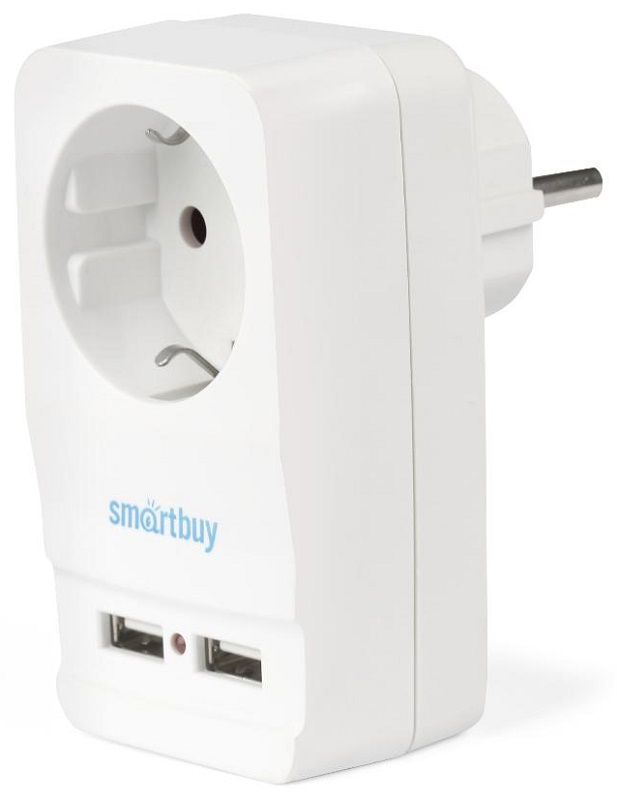Адаптер с заземлением Smartbuy 1-м+2xUSB тип A+A 2400мА белый картинка