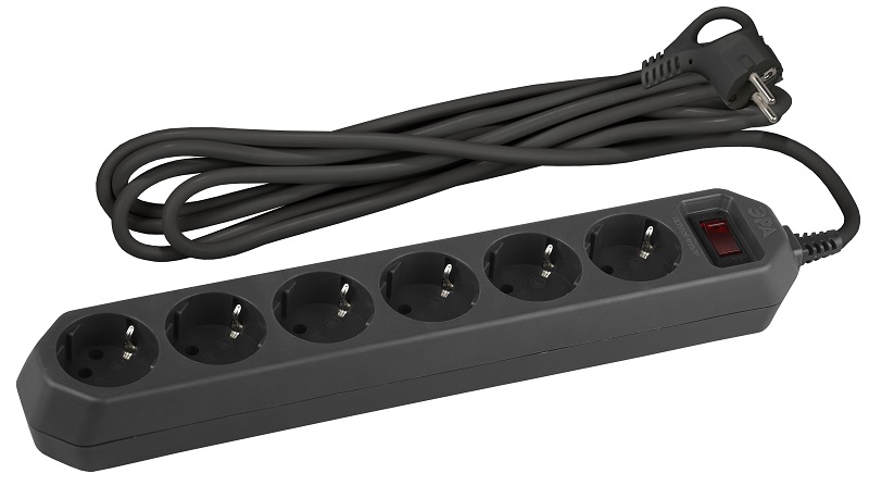 Сетевой фильтр с заземлением ЭРА USF-6es-1.5m-B 6х1,5м 10А 2200Вт черный