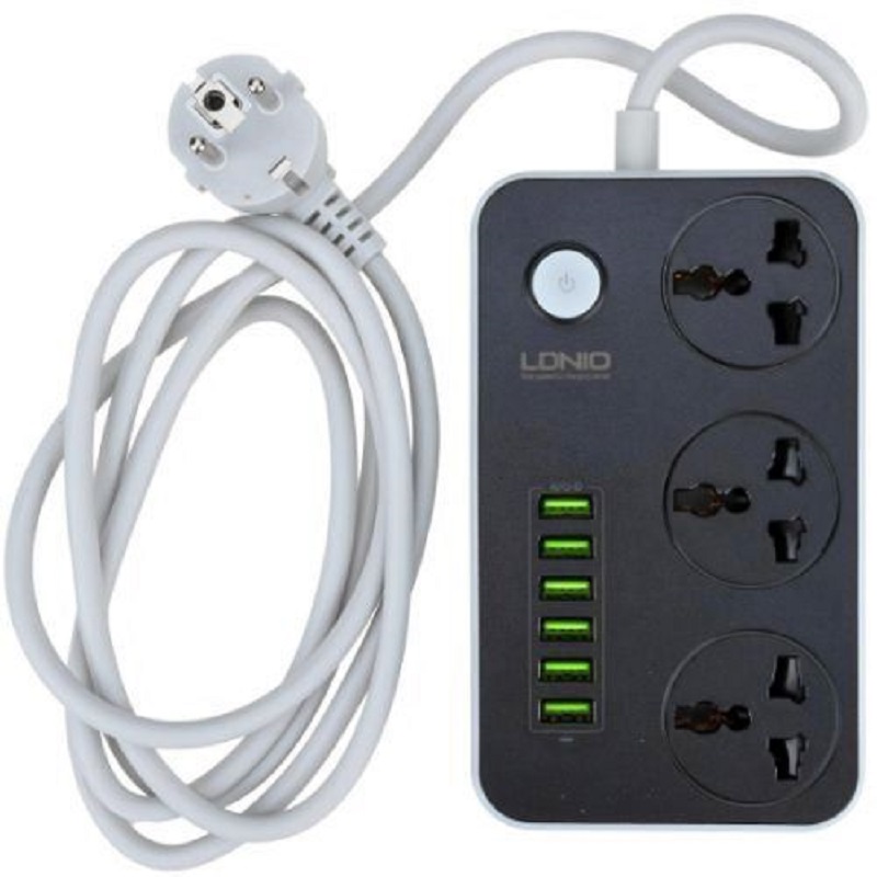 Сетевой фильтр LDNIO SC3604 - это высококачественный сетевой фильтр - удлинитель, оснащённый 3-мя универсальными (EU, US, UK) розетками для питания электроприборов, который обеспечивают максимальную мощность потребления 2500 ватт и максимальный ток - 10 ампер. Также сетевой фильтр LDNIO SC3604 имеет 6 портов USB для питания и быстрой зарядки мобильных устройств током до 3.4 ампер. Сетевой фильтр анализирует тип подключаемого устройства и автоматически определяет необходимый режим зарядки. Сетевой фильтр LDNIO SC3604 изготовлен из качественных комплектующих и обеспечивает высокую степень защиты от перепадов напряжения, коротких замыканий, перегрева, обеспечивая безопасную и долгую эксплуатацию.