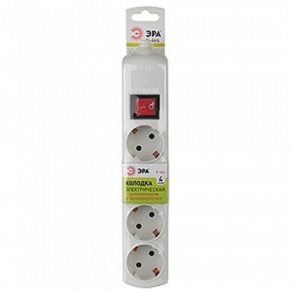 Колодка ЭРА с заземлениеми выключателем. Максимальная мощность подключаемого кабеля - 16А/3500Вт (до 1,5 мм2). Контактная группа - латунь. Материал корпуса - поликарбонат.