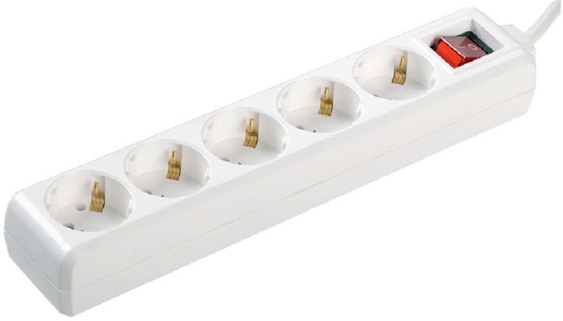 Удлинитель с заземлением; провод 3x1мм2, 100% медь, корпус - полипропилен с антипиренами (негорючий), контактные группы - латунь, максимальная нагрузка - 16A/2200Вт