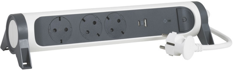 Удлинитель с заземлением и выключателем Legrand Комфорт 3+2xUSB тип A+Cх1,5м 16А 3500Вт бело-черный