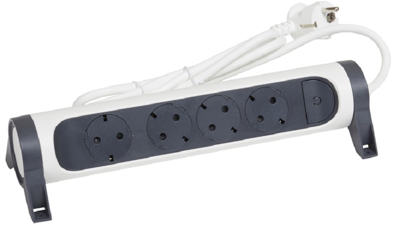 Удлинитель с заземлением и выключателем Legrand Комфорт 4х1,5м 16А 3500Вт бело-черный