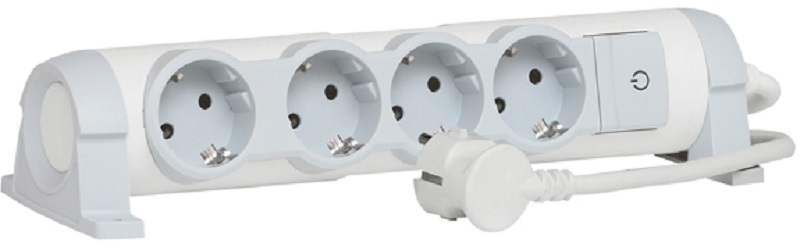 Удлинитель с заземлением и выключателем Legrand Комфорт 4х1,5м 16А 3500Вт бело-серый