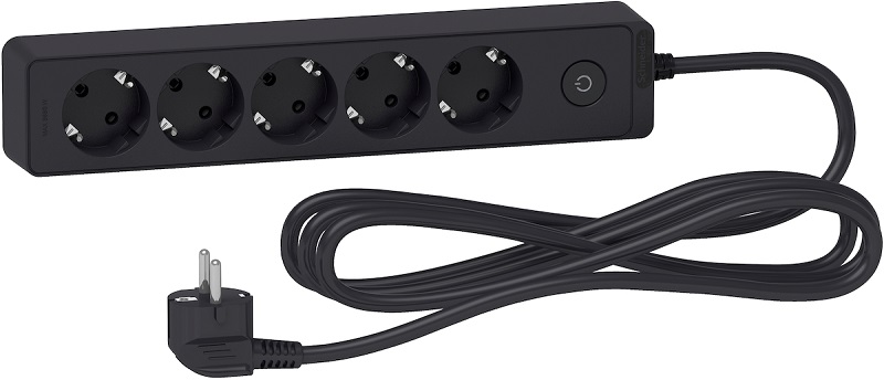 Удлинитель с заземлением и выключателем Schneider Electric Unica Extend 5-м 3,0м 16А 3500Вт черный