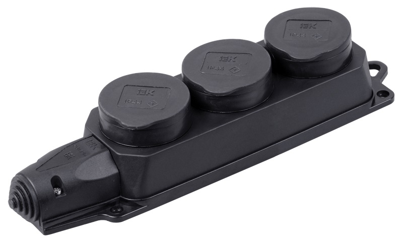 Колодка удлинителя с заземлением IEK Омега 3-м с крышкой 16А 3500Вт IP44 каучук черный