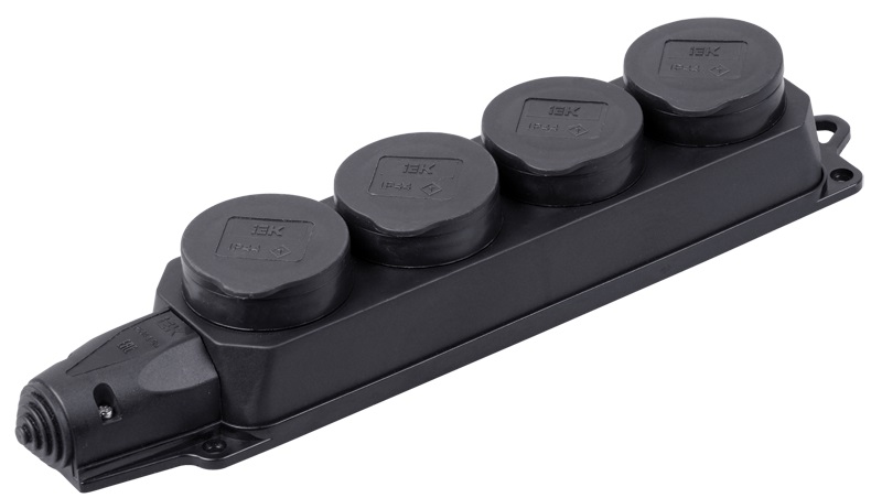 Колодка удлинителя с заземлением IEK Омега 4-м с крышкой 16А 3500Вт IP44 каучук черный