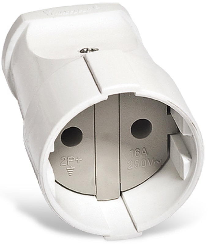 Штепсельное гнездо без заземления, белое 10А 250В UNIVersal А115 - разборный элемент для изготовления удлинителей. Изготовлен из качественного пластика, имеет белый корпус. Служит для подключения разнообразных бытовых приборов к сети электропитания 220-250 В.