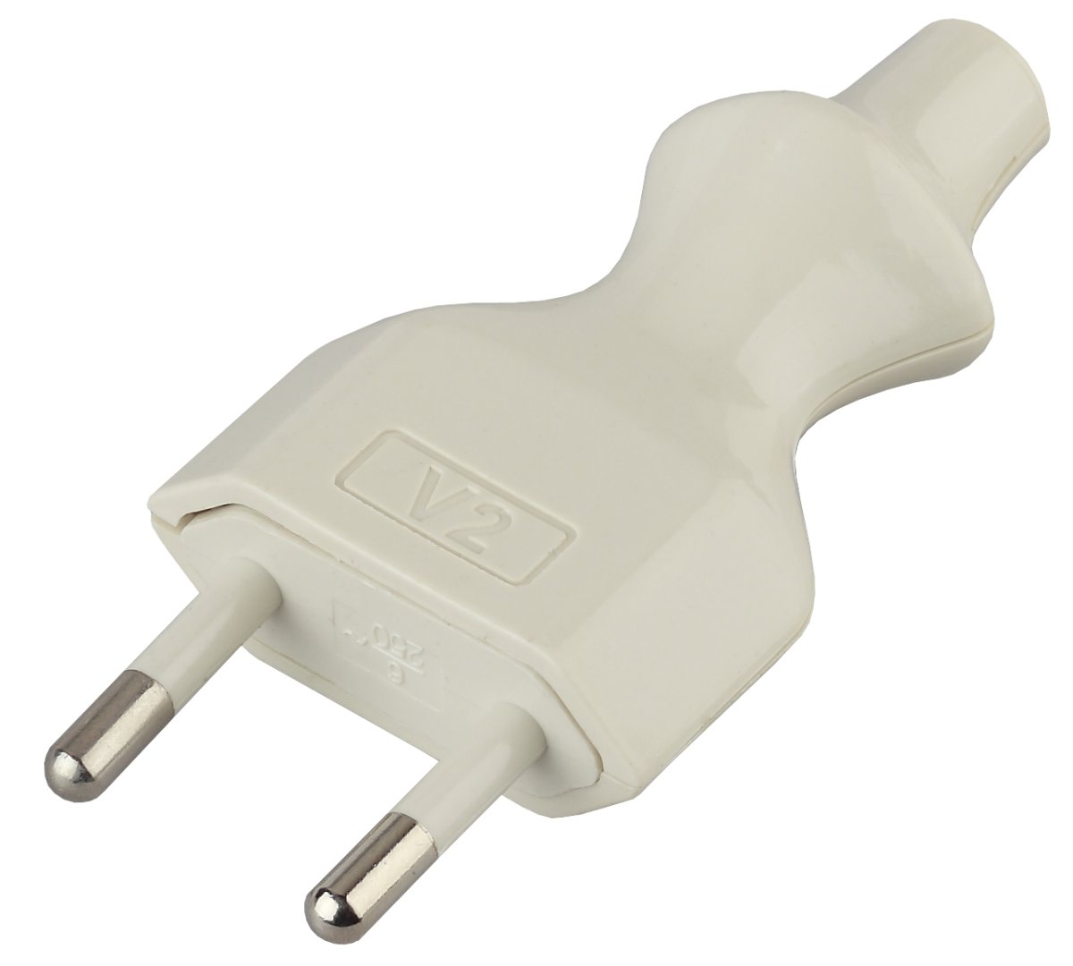 Вилка электрическая без заземления прямая ЭРА V2 10А белый