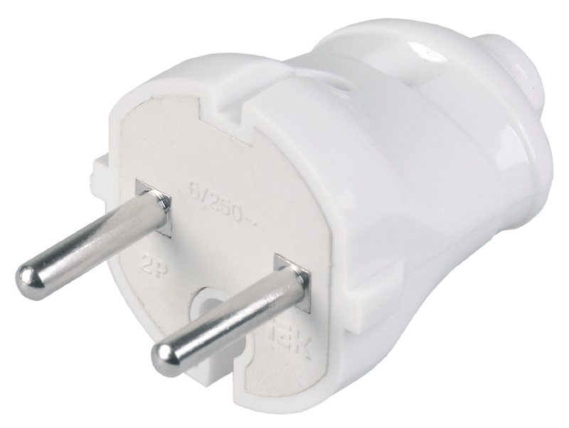 Вилка электрическая без заземления прямая IEK ВПп20-01-Ст 6А белый картинка