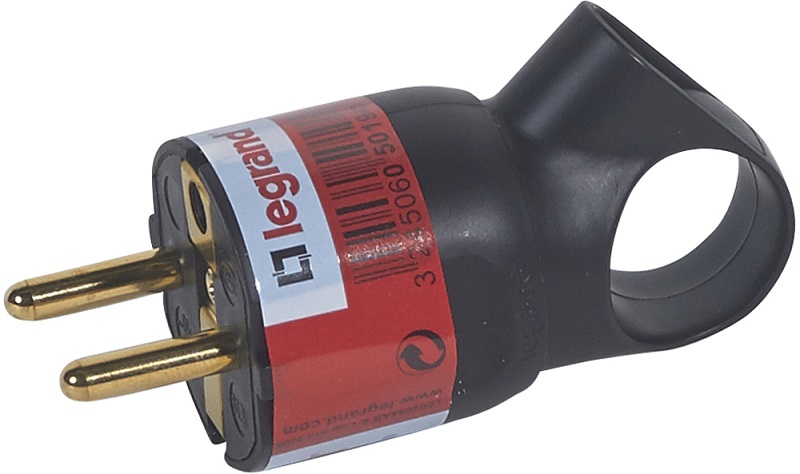 Вилка электрическая с заземлением прямая с кольцом Legrand Helium 16А черный