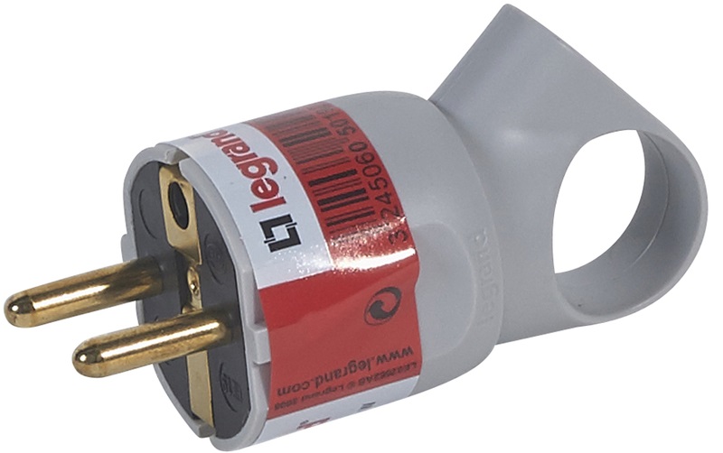 Вилка электрическая с заземлением прямая с кольцом Legrand Helium 16А серый
