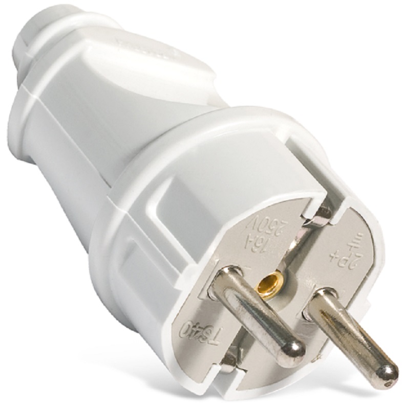 Разборные электрические вилки применяются для армирования сетевых шнуров. Важно помнить, что допустимая нагрузка на сетевой шнур зависит как от сечения провода шнура, так и от номинального тока вилки,причем определяется по наименьшему из этих значений. Номинальные токи 6 А, 10 А и 16 А эквивалентны мощностям 1300 Вт, 2200 Вт и 3500 Вт соответственно.