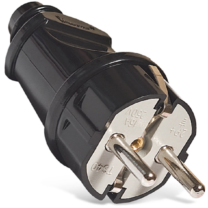 Разборные электрические вилки применяются для армирования сетевых шнуров. Важно помнить, что допустимая нагрузка на сетевой шнур зависит как от сечения провода шнура, так и от номинального тока вилки,причем определяется по наименьшему из этих значений. Номинальные токи 6 А, 10 А и 16 А эквивалентны мощностям 1300 Вт, 2200 Вт и 3500 Вт соответственно.