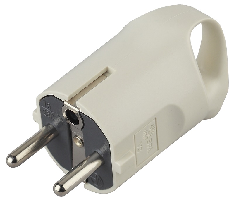 Вилка штепсельная ЭРА, с заземлением, максимальная мощность - 16A/3500В (кабель до 3x1.5мм2), поликарбонат