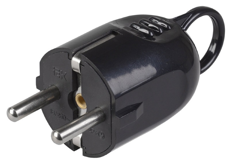 Вилка электрическая с заземлением угловая с кольцом IEK ВПп12-02-Ст 16А черный