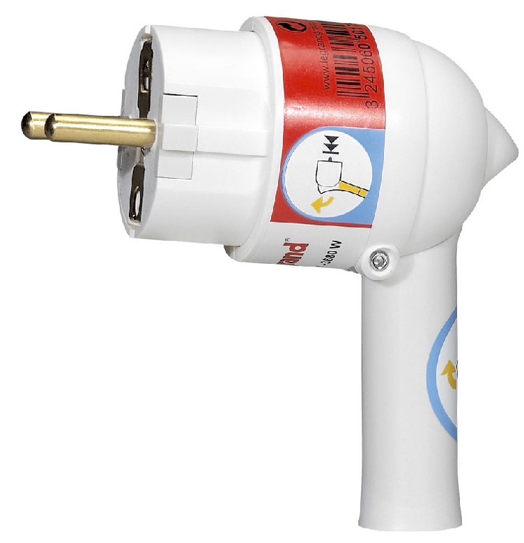 Вилка электрическая с заземлением угловая с рычагом Legrand Helium 16А белый