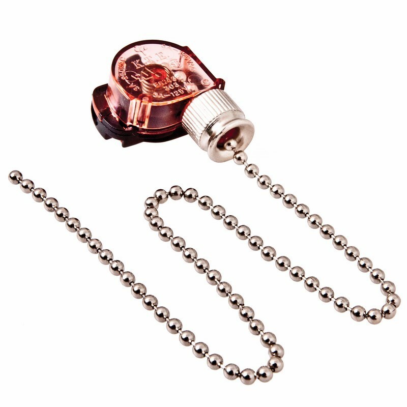 Выключатель для настенного светильника с хромированной цепочкой. Длинна цепочки 270мм. Напряжение 220В. Номинальный ток 3А