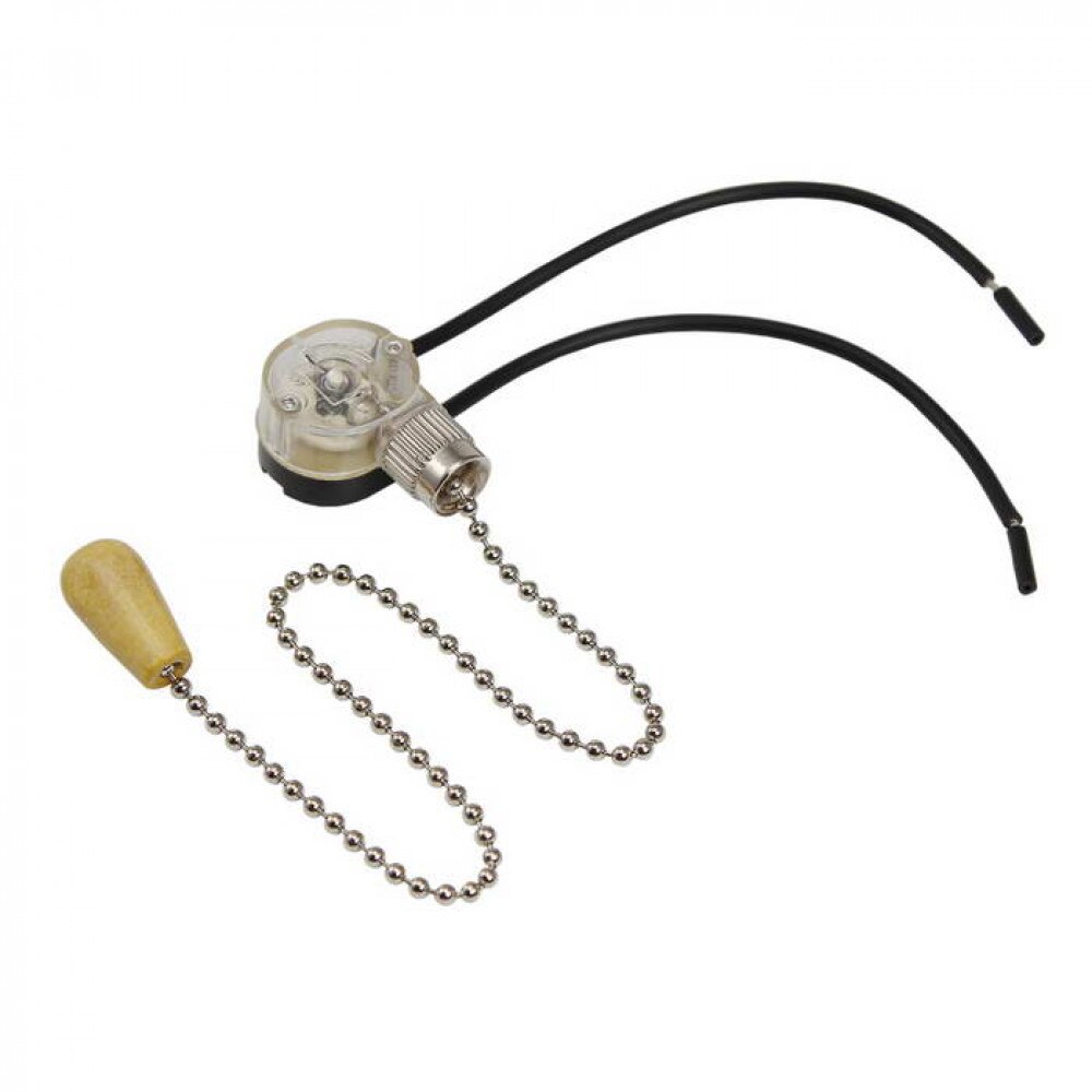 Выключатель с цепочкой, проводом и деревянной ручкой для бра Rexant 270мм хром, 3А 220V блистер картинка