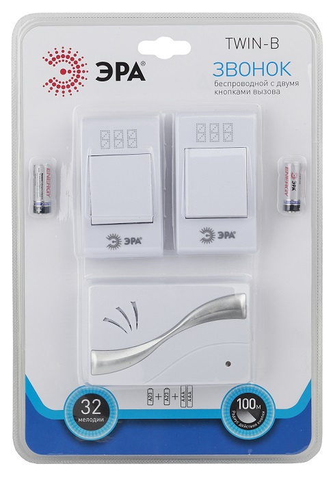 Звонок беспроводной аналоговый Эра TWIN-B 32 мелодии Белый